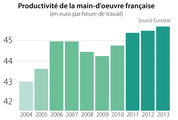 D’après Eurostat, nous produirions en moyenne 46,50€ de richesse par heure de travail (39,20 pour les britanniques, 44,80 pour les allemands).