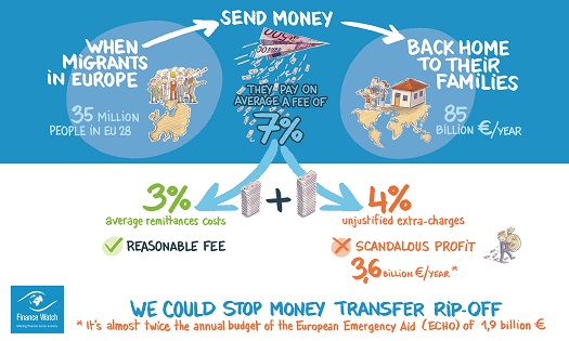 Le saviez-vous ? Lorsque les migrants vivant en Europe envoient de l’argent à leur famille dans leur pays d’origine (hors-UE), ils paient chaque année 3,6 milliards d’euros de charges abusives ? C’est bien plus que le budget annuel de l’aide européenne d’urgence (l’ECHO).