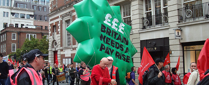 Une marche à l’appel de la Confédération syndicale TUC sous le slogan « Britain needs a Pay rise » (La Grande-Bretagne a besoin d’une augmentation de salaire) a eu lieu le 18 octobre à Londres avec la participation d’environ 90 000 personnes, enseignants, infirmières, fonctionnaires, travailleurs hospitaliers ou encore employés de la Poste mais aussi de salariés du privé et de retraités. Les manipulateurs en radiologie étaient, quant à eux, appelés à débrayer le 20 octobre, tandis que des gardiens de prison devraient faire de même le 24 octobre, toujours pour réclamer une hausse des salaires.